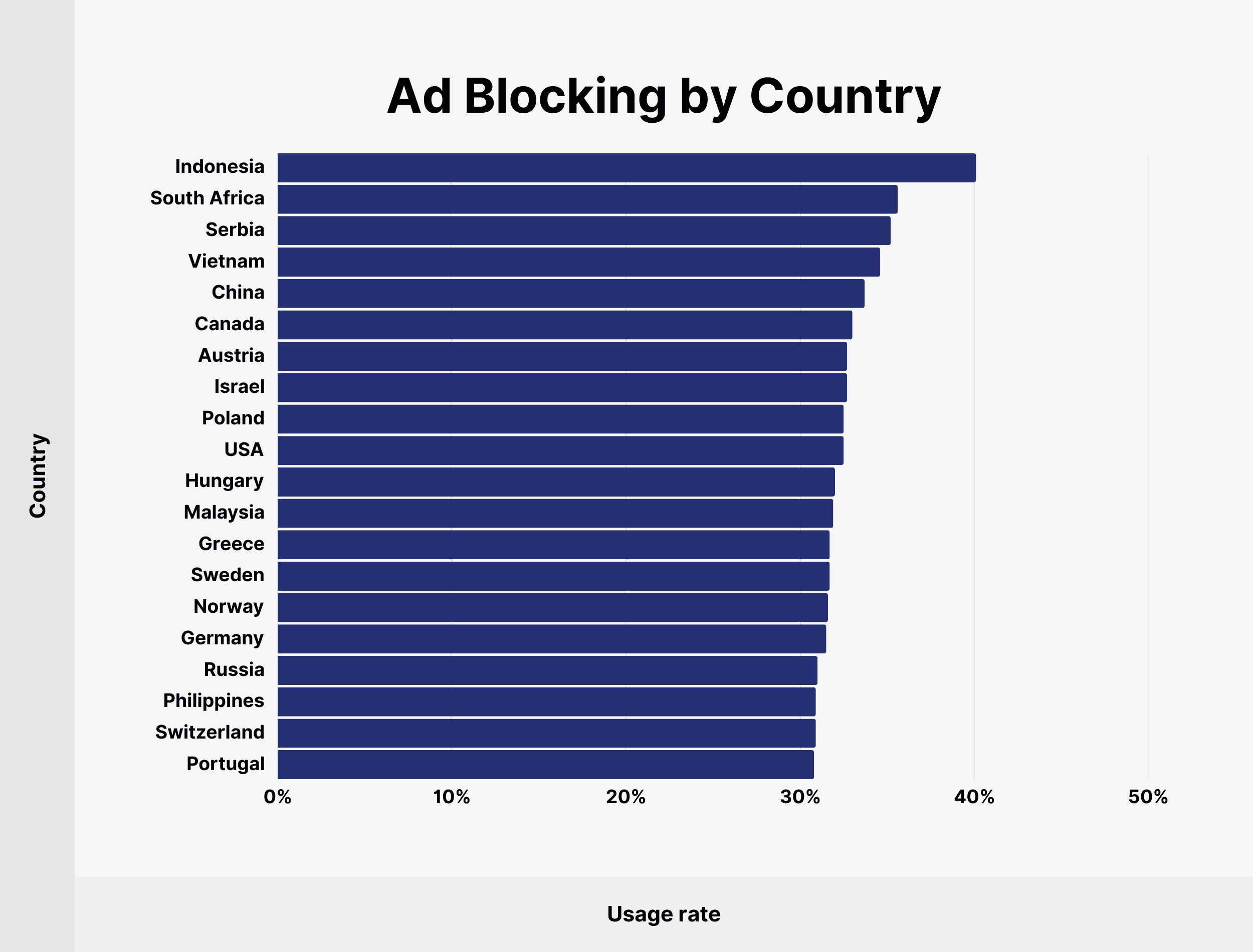 - Indonesia has the highest national ad-blocker penetration rate (40.1%)
