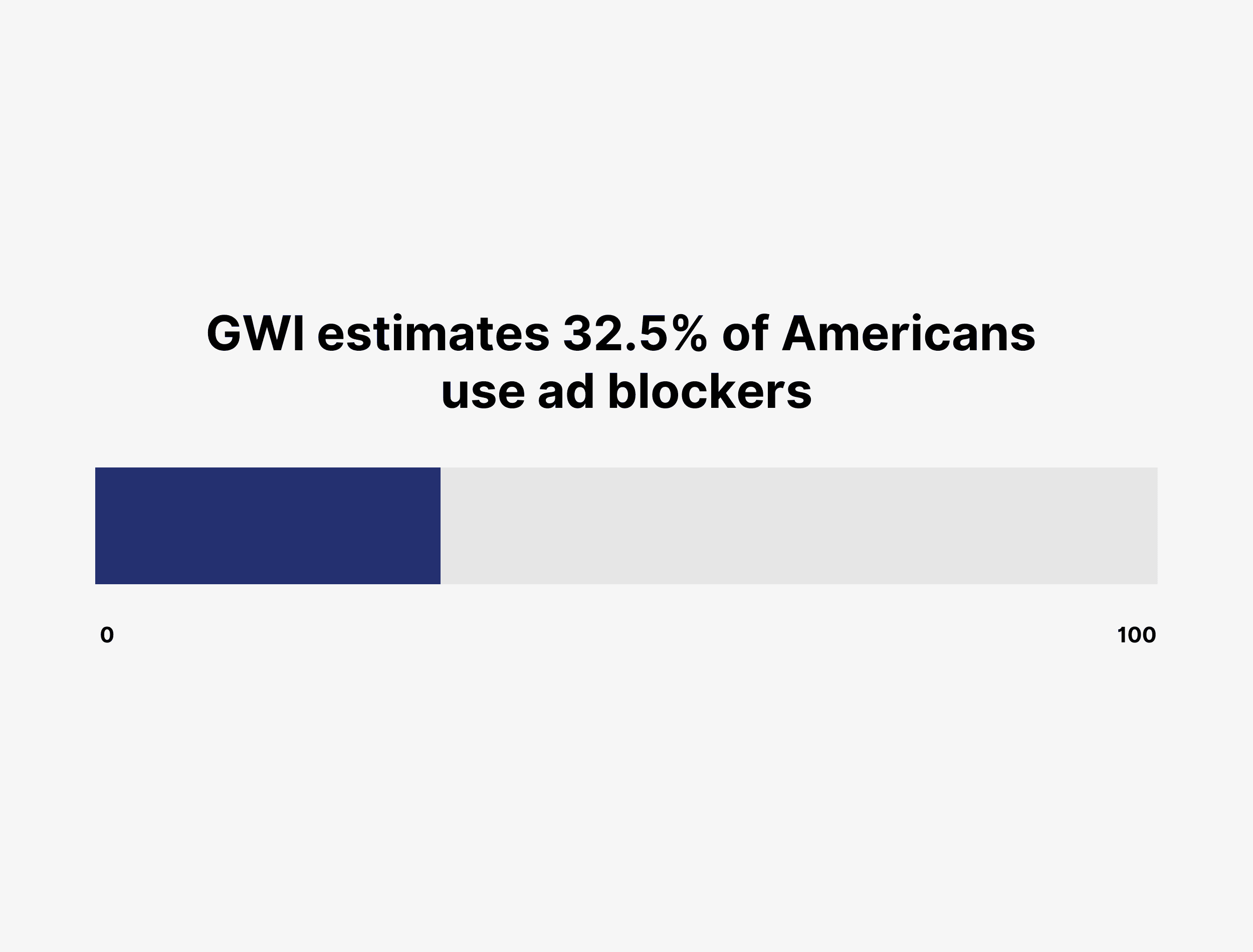 As of Q2 2025, GWI estimates that 32.5% of Americans use ad blockers. But there are other estimates too.