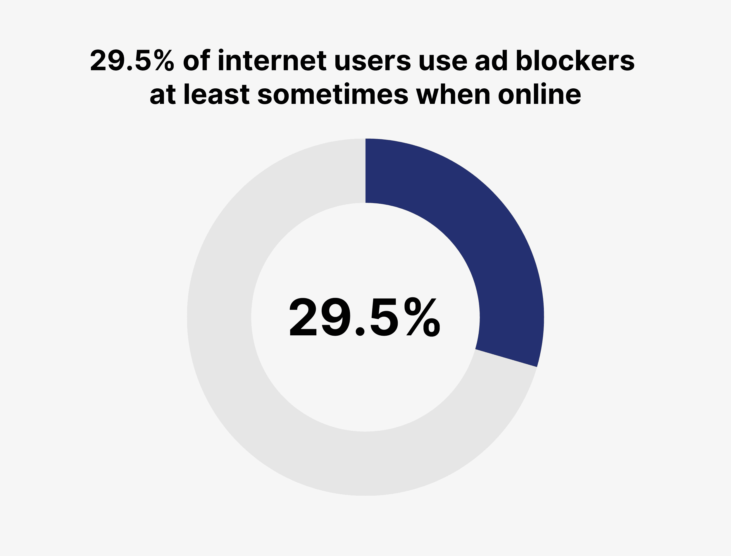 - 29.5% of internet users worldwide use ad-blocking tools.