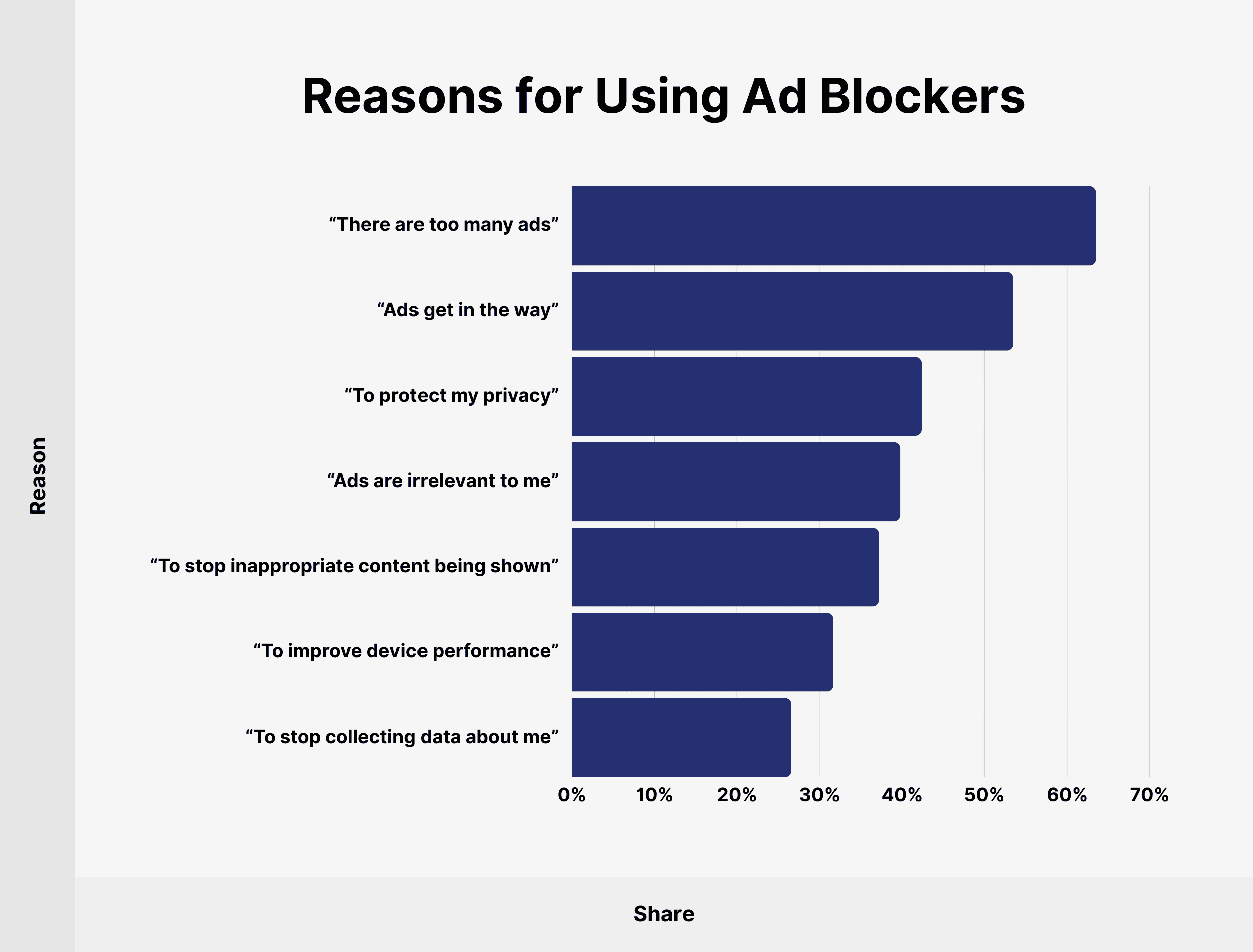 Here’s a list of the primary reasons given for using ad-blocking tools: