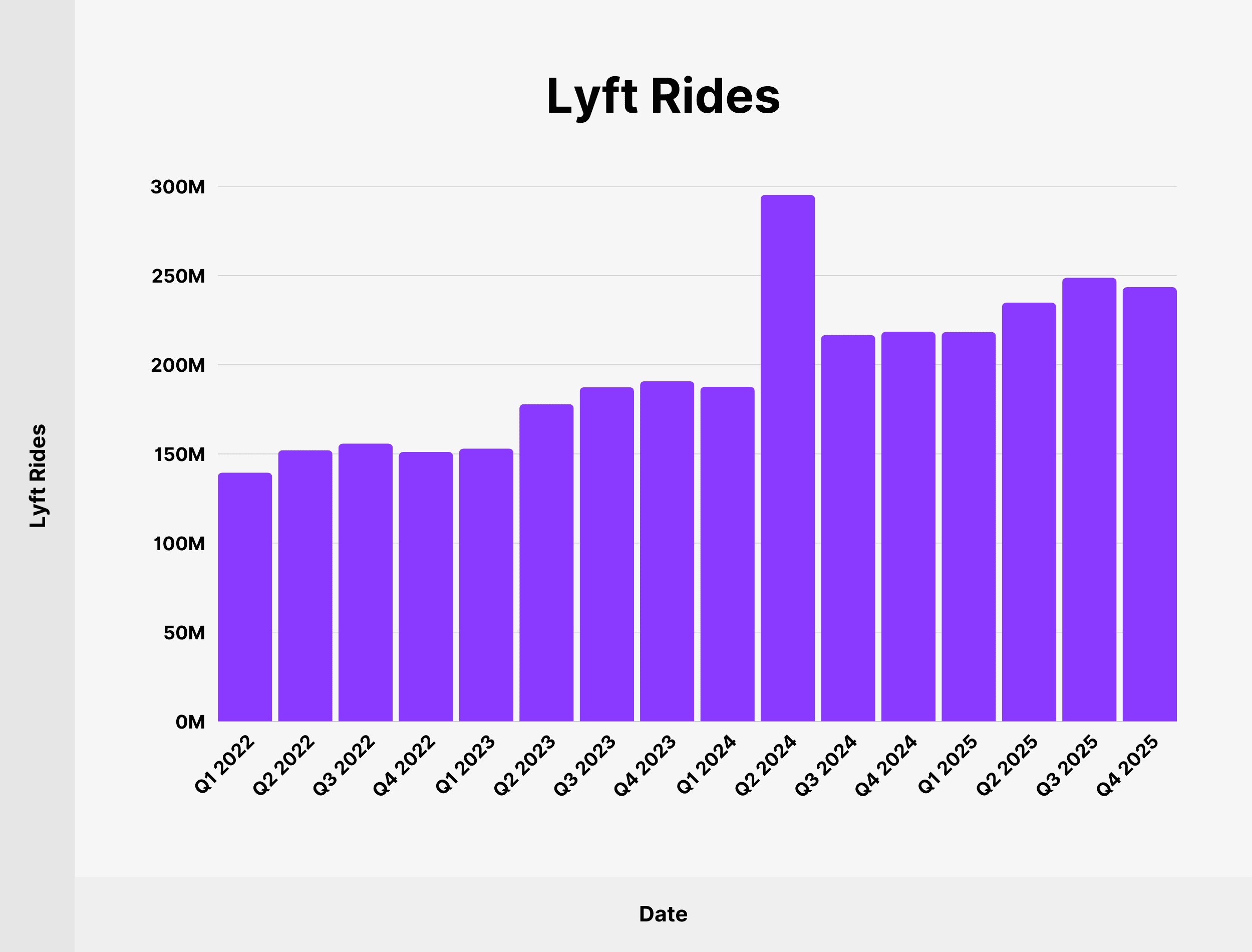 Lyft had 243.5 million rides in Q4 2025, showing an annual growth of 11.44%