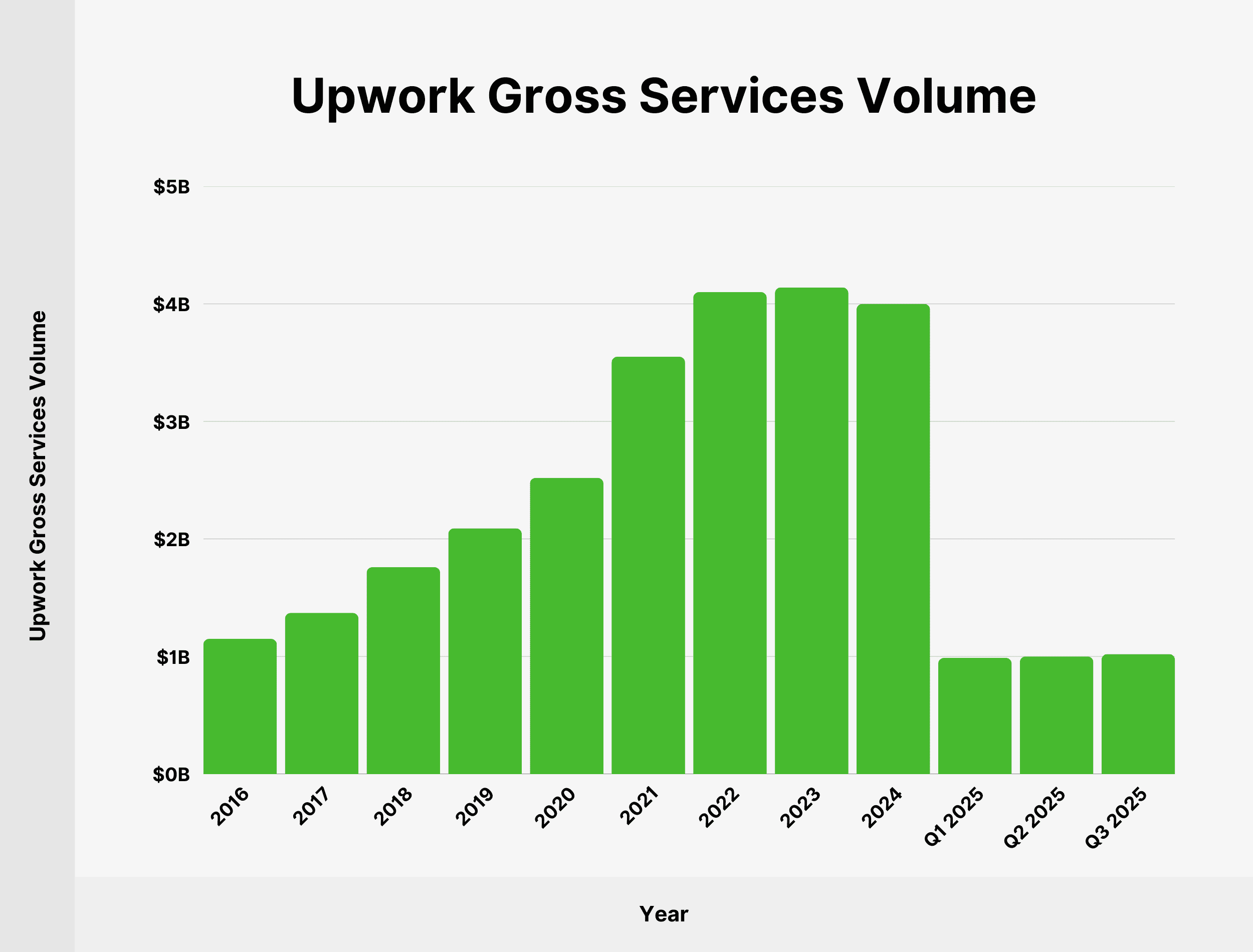 Upwork processed $3.01 billion in gross services volume in the first 9 months of 2025.