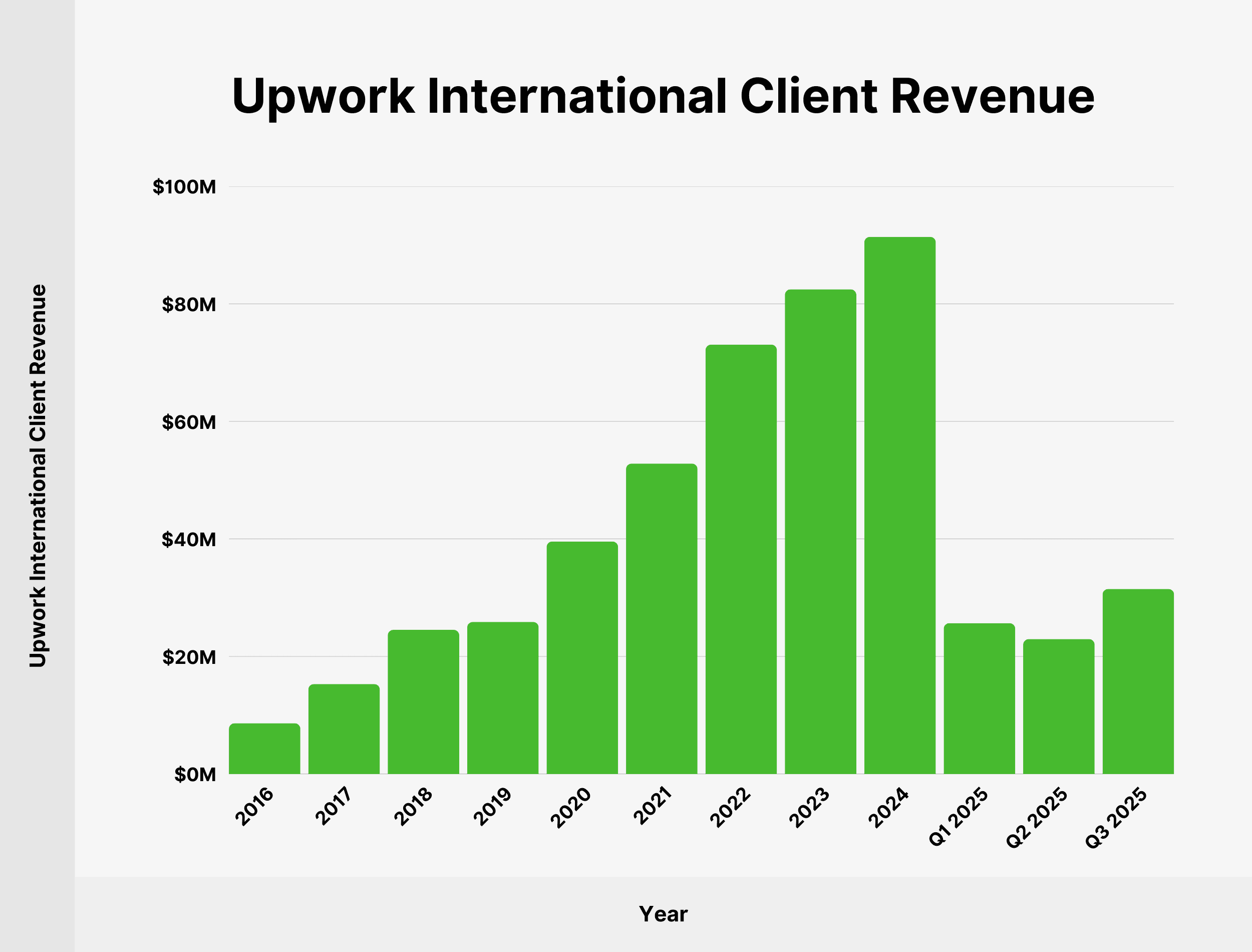 Upwork’s revenue from clients outside of the US reached $91.41 million in 2024, accounting for 27.69% of all client revenue.